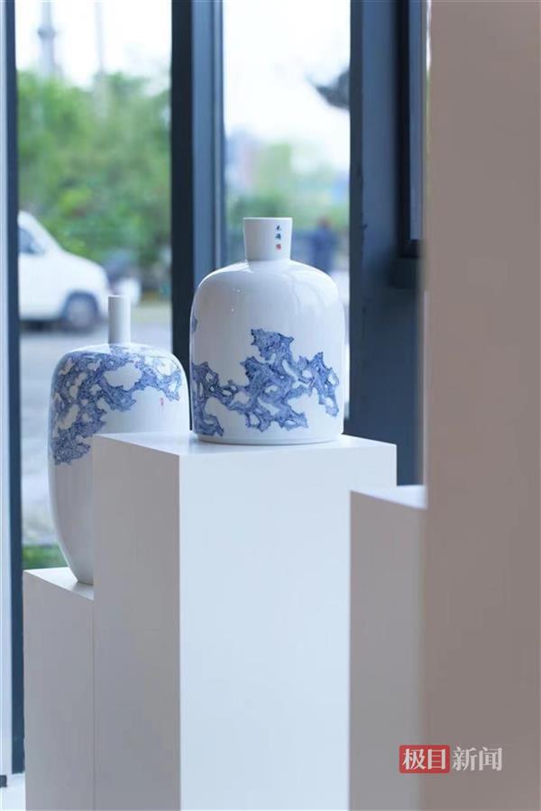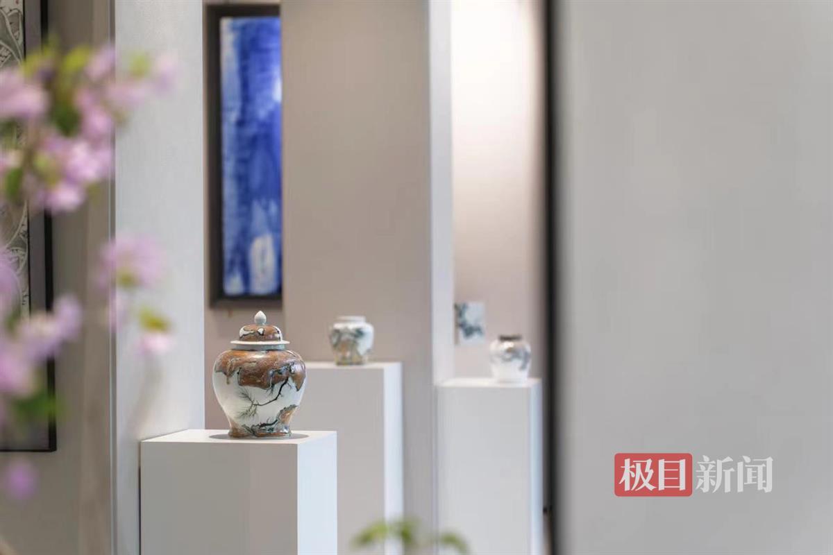 此次展出的,是龚余辉自2008年以来,15年间创作的陶瓷艺术作品,其中瓷板画36件,陶瓷器皿22件。这些作品主要分为青花和高温颜色釉两个体系,且对花鸟、山水领域都有所涉及。